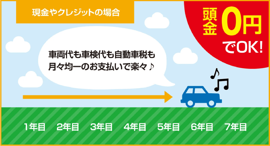 お客様のご要望に応じて頭金の有無は選択可能ですので、店頭にてご相談ください。